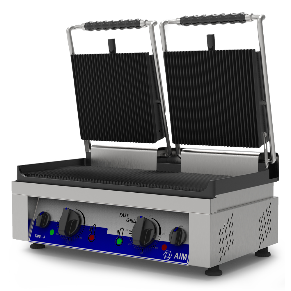 • Grill plate ribbed at the top & bottom • 50 °C – 300 °C temperature range • Heat resistant handle • Adjustable thermostat