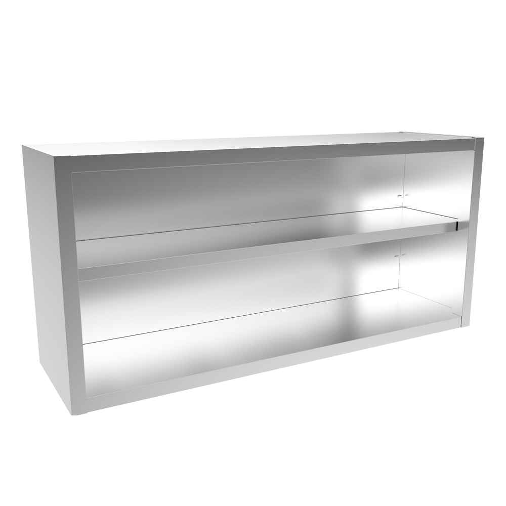 • Brushed structure stainless steel AISI 430 • Welded construction • Open version • 25KG load capacity • Including middle shelf